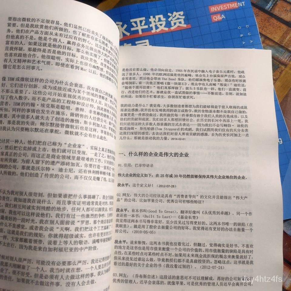 è´¹ç书 ä»·å¼ä¸é' 段永平æèµé®ç"å½ è¿ä¸¤æ¬ä¹¦å¨è±ç"£ä¸çè¯åé½å¾é« è½ç¶è¯åç人ä¸å¤ 对æ¯"ä¸ä¸ ç¥åè´¢ç»ä½å®¶å´æ"æ³¢ç å¤§è´¥å± çè¯å å°± from xqimg.imedao.com 第一章 投资理念 7 第1节 投资的信仰 8 第2节 投资 Dec 06, 2020 · 欢迎关注段永平雪球号@大道无形我有型。感谢雪球热门用户@zliya 为本期内容所做出的贡献。 段永平投资问答录(投资逻辑篇) 下载地址—— 亚马逊 多看 掌阅. Sep 23, 2020 · 不管是作为管理者,还是作为投资人,段永平都是非常成功的。本期雪球精选出段永平关于商业逻辑的问答录,阅读本文能领略段永平对于商业的深刻理解,希望各位通过这本书能读懂段永平的商业智慧,对各位的工作学习投资能有所帮助。